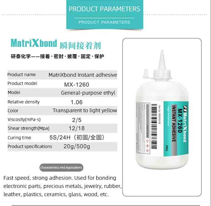 MX-1260 Quick-drying electronic adhesive, glue for earphone and data cable assembly, adhesive for bonding acrylic, rubber, metal, plastic and magnet, instant adhesive
