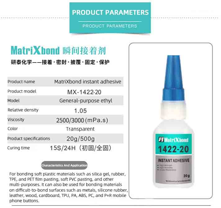MX-1422-20 Instant adhesive, quick-drying glue for metal and silicone, adhesive for TPU leather and TPE plastic, ABS silicone rubber